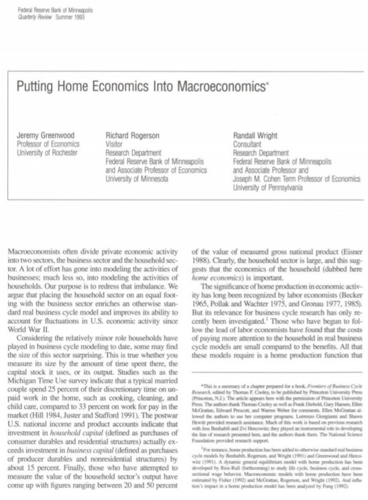 in applied price theory, business cycles, econometerics, economic growth, economic history, economics of education, economics of love and marriage, gender, human capital, labour economics, labour supply, law and economics, macroeconomics, Marxist economics, monetary economics, occupational choice, poverty and inequality, public economics, unemployment Tags: household production, real business cycles