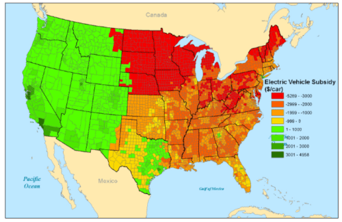 - The benefit is large and positive in many places in the west because the western electricity grid is relatively clean – primarily a mix of hydro, nuclear, and natural gas.
