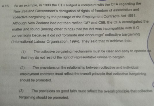 For example, when the government was choosing to deregulate collective bargaining, the sovereignty of Parliament was questioned because of an ILO convention. Helen Kelly, CTU President said: