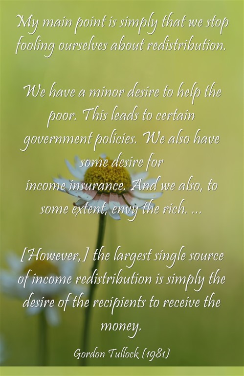 in applied welfare economics, constitutional political economy, Gordon Tullock, income redistribution, Public Choice Tags: Gordon Tullock, income redistribution