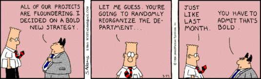 Jack Nickerson and Todd Zenger wrote a great paper in 2002 on the efficiency of being fickle – of repeated reorganisations of the workplace. Their point was simple: times change and they change a lot faster than we think so organisations have to adapt to their rapidly unfolding new market conditions.
