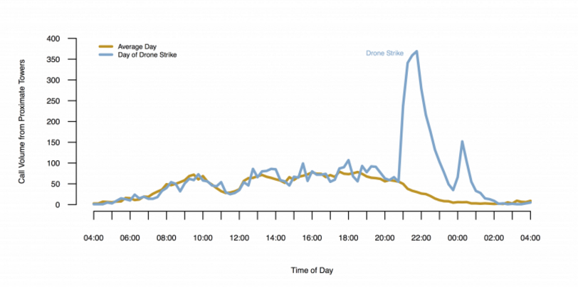 Drone strikes on terrorist cell phone users by time of day in Yemen