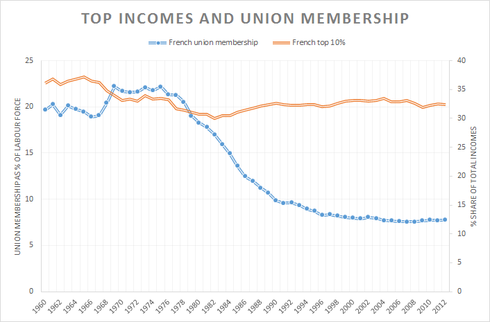 The French ruling class is as lazy as their transnational co-conspirators down under. French union membership is in serious decline albeit from a low base. An opportunity lost for the French ruling class. It has not lifted a finger to extract additional labour surplus from the downtrodden French proletariat now stripped of their only line of collective defence against capitalist exploitation.