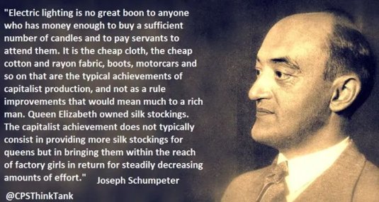 in applied welfare economics, economic history, entrepreneurship, liberalism Tags: capitalism and freedom, creative destruction, Joseph Schumpeter, The Great Enrichment, The Great Escape, The Great Fact