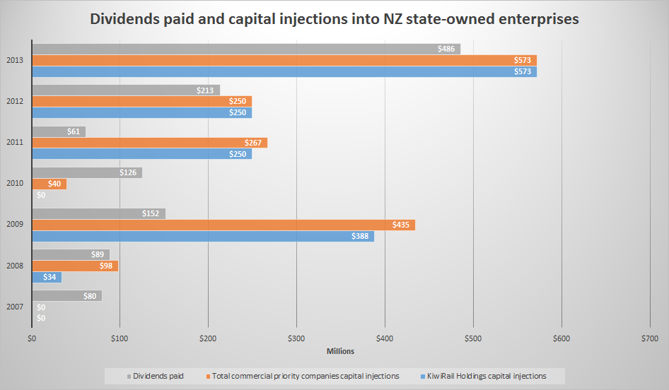 NZ state-owned enterprise dividends & cash injections since 2007 – updated