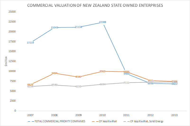 The commercial valuation of the New Zealand state-owned enterprises portfolio since 2007 with and without Solid Energy and KiwiRail