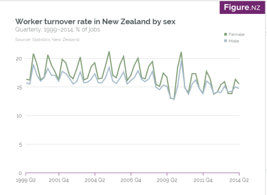Source: Worker turnover rate in New Zealand by sex – Figure.NZ.