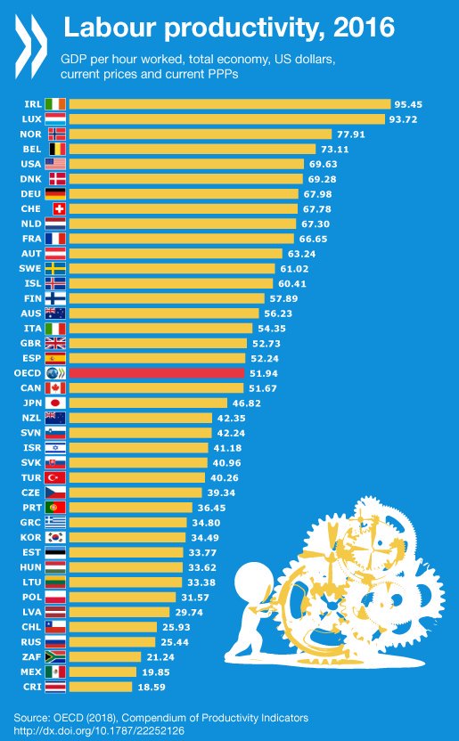 Canada, New Zealand and Australia should be catching-up with the USA in productivity per capita because copying the global leader is cheaper than innovation. Canada, New Zealand and Australia all have the basics to do this: a market economy, the rule of law and openness to foreign technology and international trade.