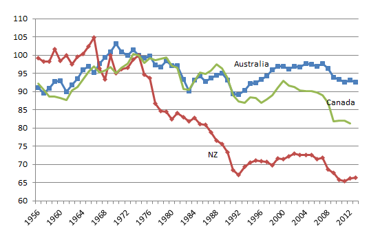 Source: John Quiggin “How New Zealand fell further behind”. Inside Story, 11 November 2015.