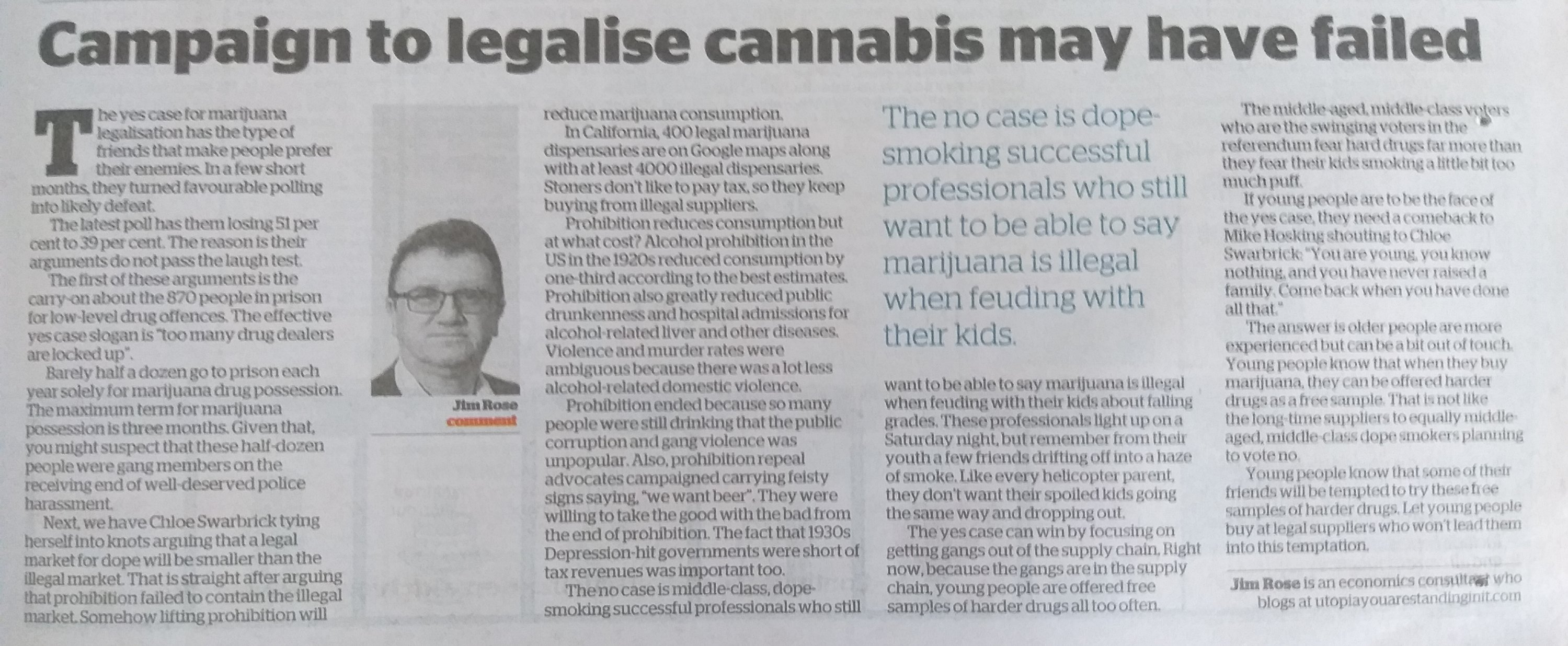 in economics of bureaucracy, economics of crime, economics of information, economics of regulation, health economics, law and economics, liberalism, libertarianism, politics - New Zealand, Public Choice, public economics Tags: marijuana decrimilisation