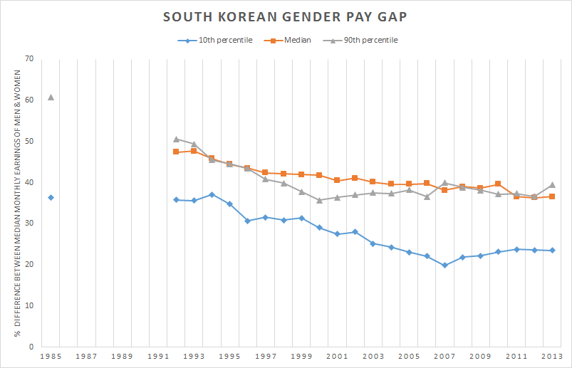 In the above chart I have plotted the average weekly hours worked of Japanese workers and the Japanese gender wage gap. Two things can be noticed from the above chart:
