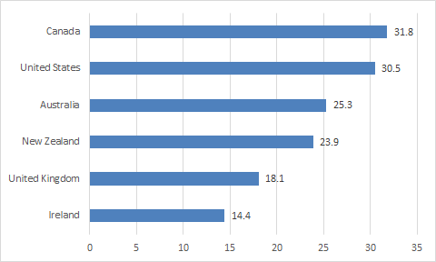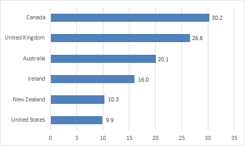 Canada seems to be a bit of a patriarchal hellhole while New Zealand does pretty well in gender wage gaps.