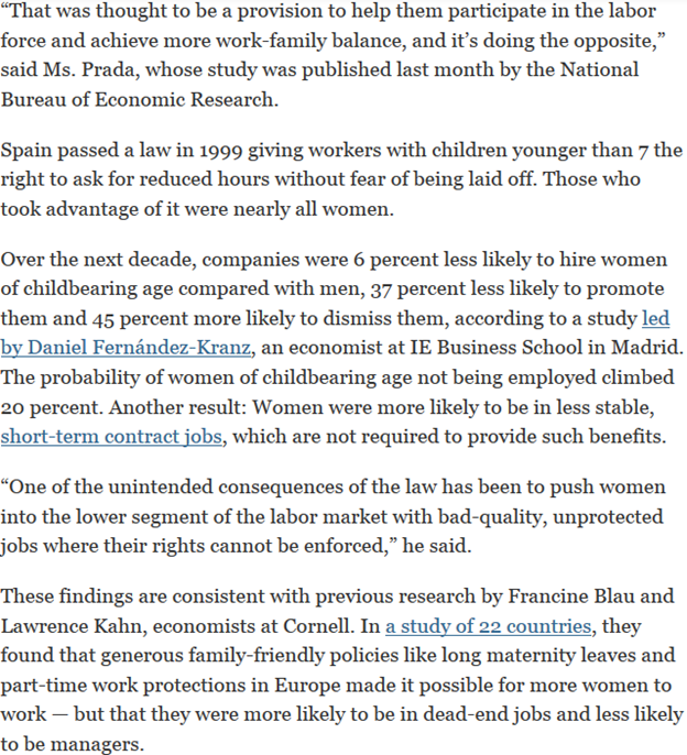 The NYT must be slipping with "When Family-Friendly Policies Backfire”