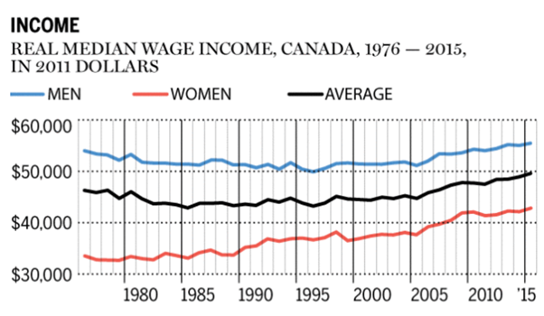 in applied welfare economics, discrimination, economic history, gender, labour economics, labour supply Tags: Canada, gender wage gap, middle class stagnation, reversing gender gap, top 1%, wage stagnation
