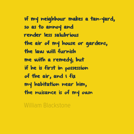The organic farmers, of course, could have negotiated with their neighbours for covenants to restrict land use that undermine there are unusually pristine requirements for quiet enjoyment of their land and their neighbours land too. Easy to do when the land is first unused, but once economic activity accumulates, not so easy in terms of transaction costs and hold-outs.