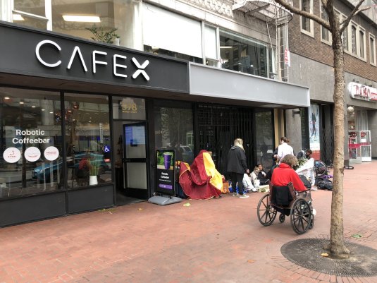 San Francisco $15 minimum wage: Fully Robotic Coffeeshop next to the Jobless Homeless