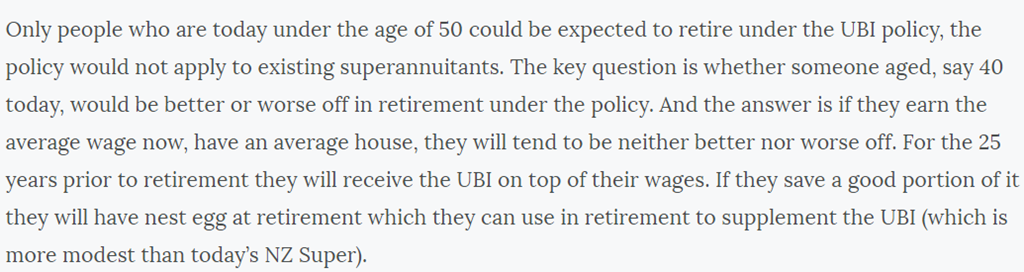 Gareth Morgan revealed today a hitherto unnoticed design feature in his Universal Basic Income of $11,000 per annum. It will be phased in over a long time. That will mean that Generation Rent will continue to pay taxes to fund a universal old age pension for their parents and grandparents, but will not be fortunate enough to receive that themselves.