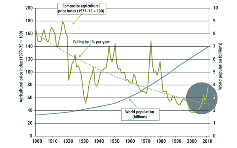 Even taking population growth into account, food production per person is actually increasing: j.mp/1Qo0fPt http://t.co/VH0NieLMOX—
