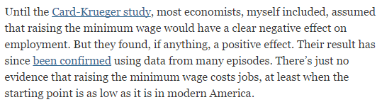 From wisdom to conviction – Paul Krugman on the Card–Kruger study of minimum wages (1998 and now)