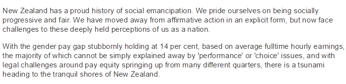 in applied price theory, discrimination, fiscal policy, gender, human capital, income redistribution, labour economics, labour supply, occupational choice, politics - New Zealand, Public Choice, public economics, rentseeking Tags: gender wage gap, pay equity, sex discrimination