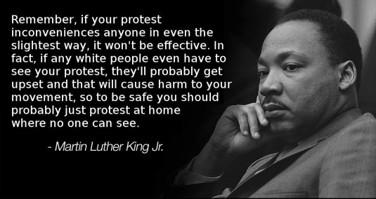 Central to the notion of peaceful protest is fidelity to democracy and the rule of law. The idea is not to impose your will upon others, but to persuade the majority to reconsider their position by showing the passionate extent to which you disagree with them and honestly believe they are mistaken.