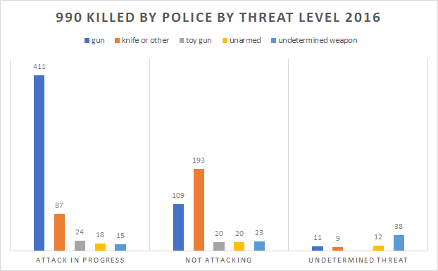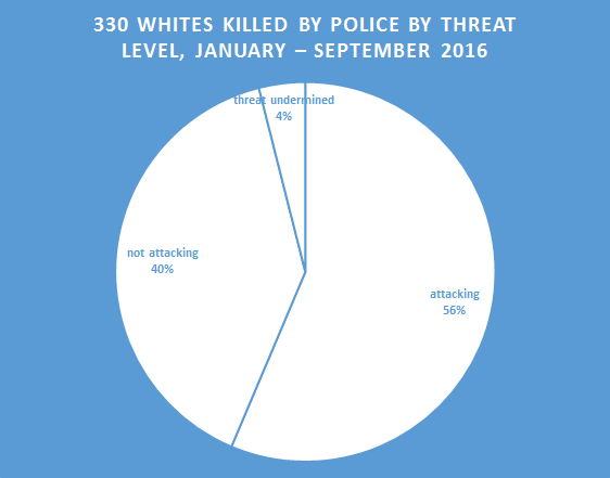 Blacks and whites killed by police by threat level by threat level, January – September 2016