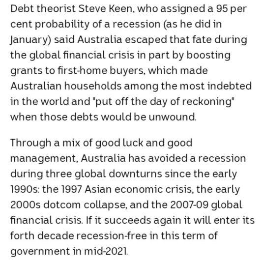 @ProfSteveKeen 15(?) years of erroneous forecasts of an Oz recession. 1st home grants warded off Minsky recession for 10 years!