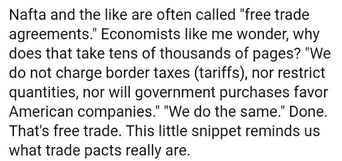 Never mind that the “concessions” trade negotiators are so proud of wresting from other nations are almost always actions these nations should have taken in their own interest anyway; in practice countries seem willing to do themselves good only if others promise to do the same.