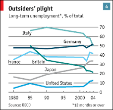 Euroland has a labour aristocracy – a two-tier system with ultra-secure workers with the permanent jobs and vulnerable temporary workers. The prime-age workers with the permanent jobs are pitted against the young, the unemployed and the older workers – these three groups are either locked-out or pushed-out. It took the equally worse recession in U.S. post-war history for their unemployment rates to reach the levels in Euroland in most any year out of the last 20.