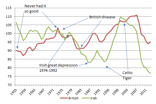 in business cycles, economic growth, economic history, entrepreneurship, global financial crisis (GFC), great depression, macroeconomics Tags: British disease, British economy, Celtic Tiger, Ireland, prosperity and depression, sick man of Europe