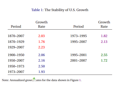 - There is no significant recovery during the period in the sense that there is no subperiod of a decade or longer in which the growth of output per working age person returns to rates of 2 percent or better.