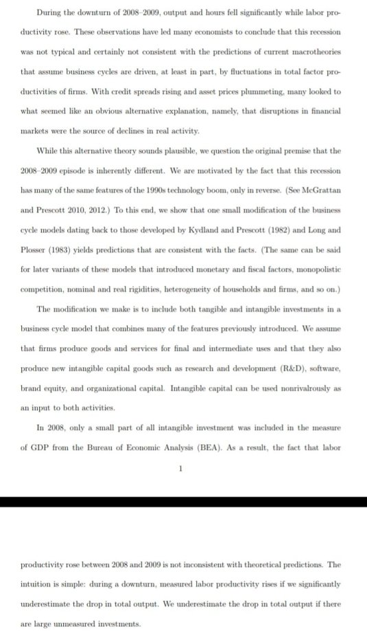 Prescott and McGrattan on intangible investment and real business cycle theory