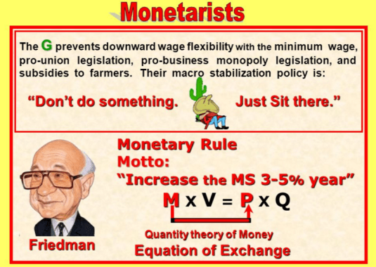 In their breathless protestations, neither were sufficiently in-tune with their Keynesian educations to remember the role of sticky wages or even the need for the monetary growth reductions to be gradual and, more importantly, credible as per Milton Freidman and as per Tom Sargent’s End of 4 big and two moderate inflations papers.