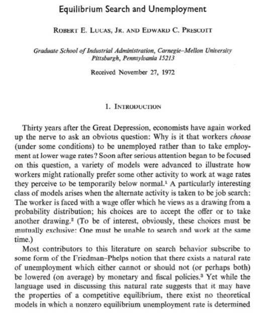 in applied price theory, business cycles, labour economics, labour supply, macroeconomics, monetary economics, Robert E. Lucas, unemployment Tags: search and matching