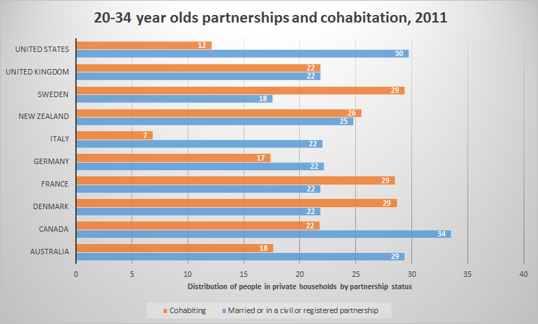 They certainly don’t go much for cohabiting in Italy or indeed the USA among young adults. Cohabitation is pretty much the same everywhere else. Marriage is not so common in Sweden generally among young people.