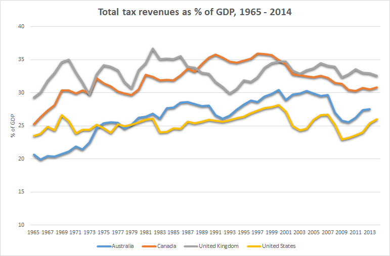 in economic history, public economics Tags: Australia, British economy, Canada, growth of government, size of government