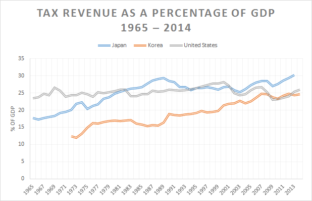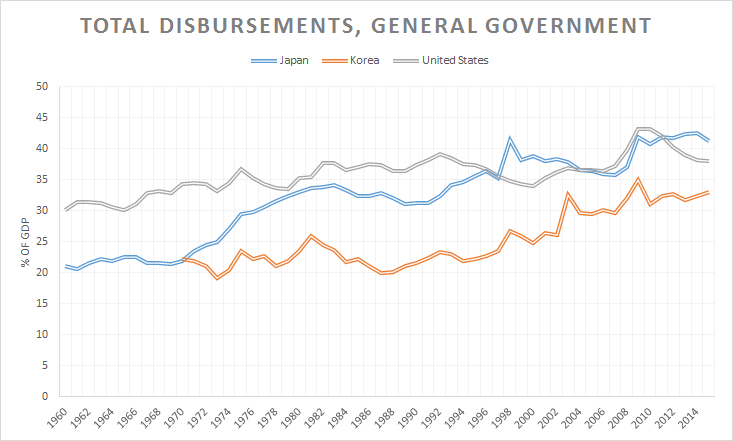 in development economics, economic history, growth miracles, Public Choice, public economics Tags: growth of government, Japan, size of government, South Korea