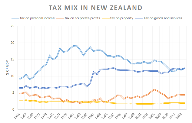 The introduction of the GST in 1986 led to a major change in the New Zealand tax mix. There was no offsetting income tax cuts.