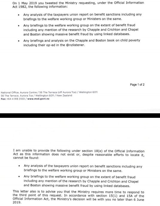 Neither @msdgovtnz nor the welfare working group have any interest in benefit fraud research @TaxpayersUnion