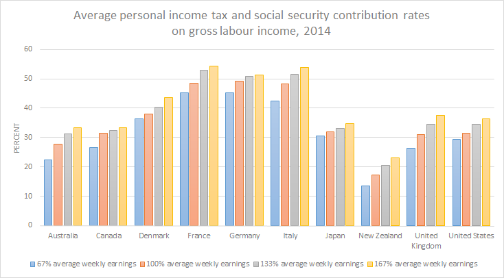 by Jim Rose in politics - Australia, politics - New Zealand, politics - USA, public economics Tags: Australia, Canada, Denmark, France, Germany, Italy, Japan, Social Security taxes, taxation and labour supply, the dish economy