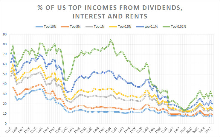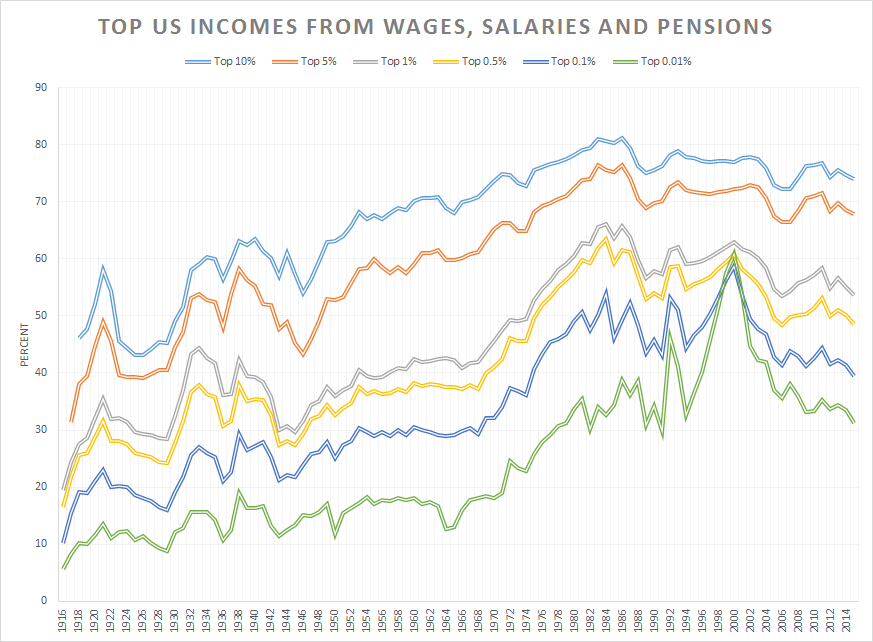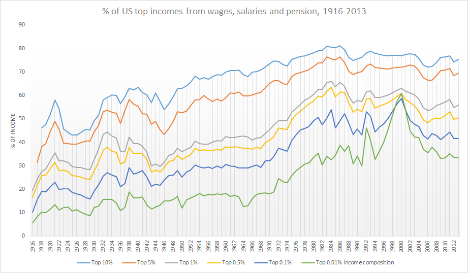 Everybody from the top 10% to the top 0.01% have to work for their living these days with much of their income coming from wages.