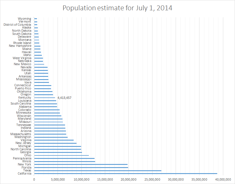Source: List of U.S. states and territories by population – Wikipedia, the free encyclopedia.