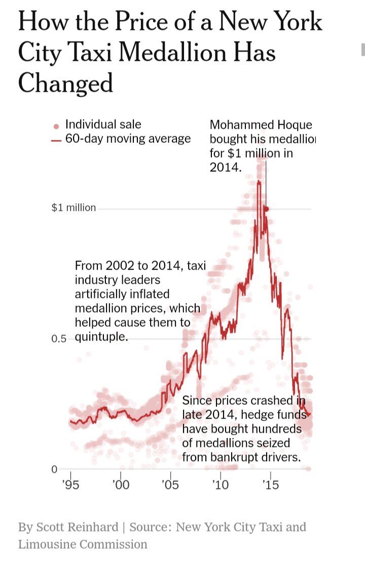 NYC's fourth driver suicide. Yellow cab drivers are in financial ruin due to the unregulated expansion of Uber. What was a living wage job now pays under minimum.