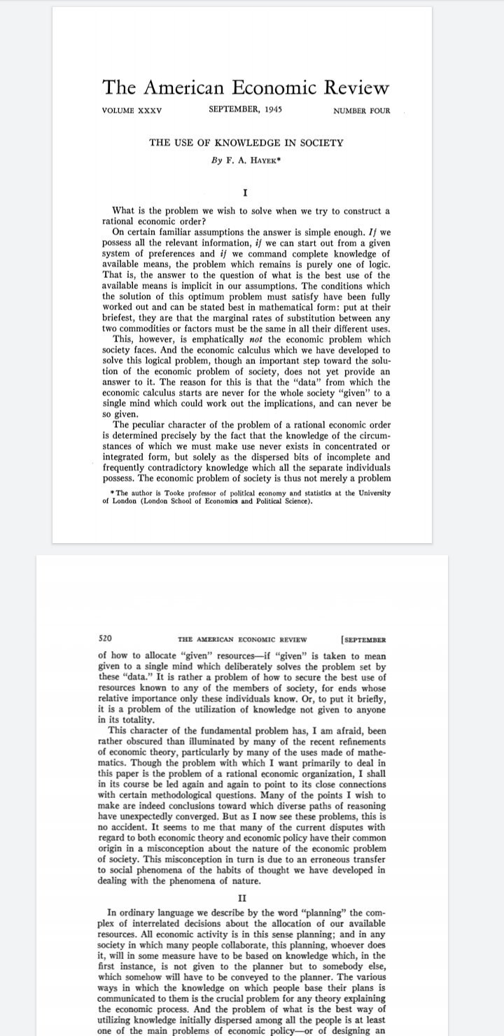 Hayek’s finest paper