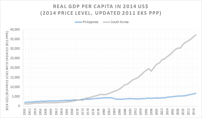 Making one miracle: Philippine and South Korean real GDP per capita since 1950