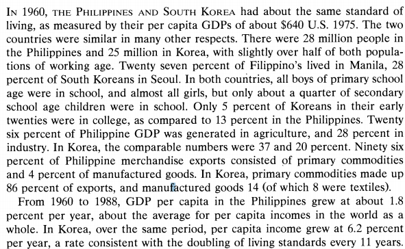 in development economics, economic history, growth miracles Tags: South Korea, The Philippines