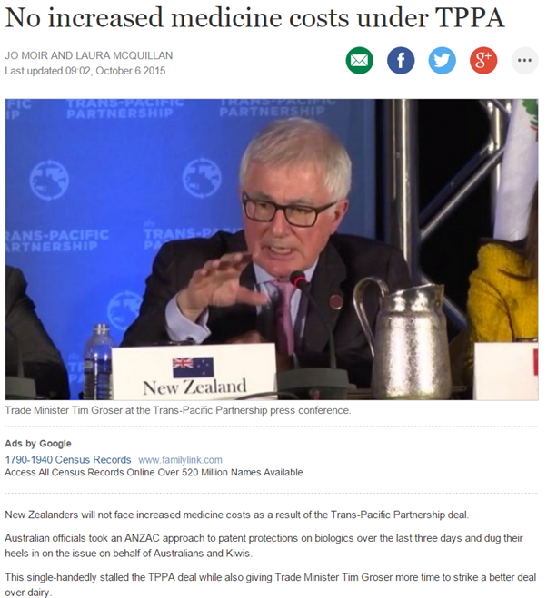Source: No increased medicine costs under TPPA | Stuff.co.nz