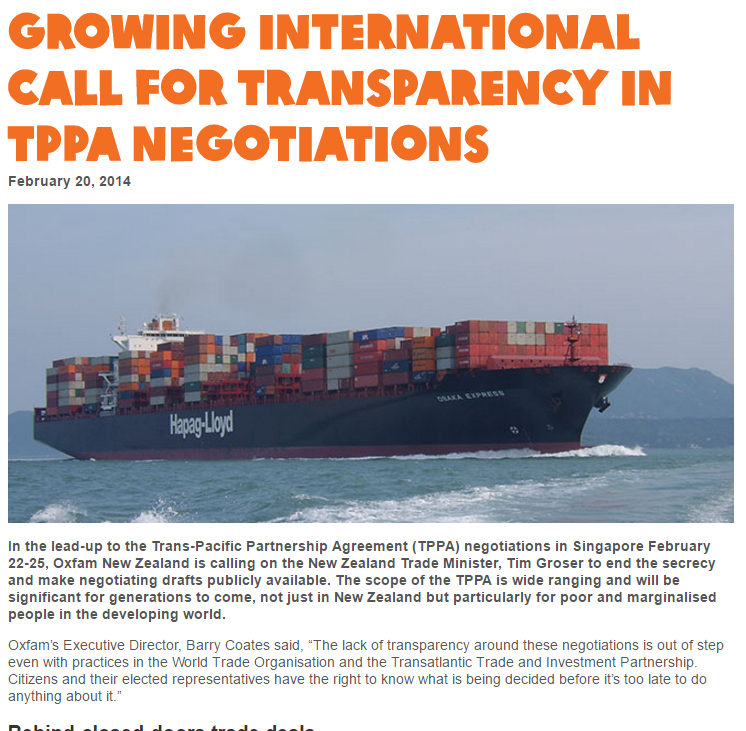 Source: Growing international call for transparency in TPPA negotiations | Oxfam New Zealand.