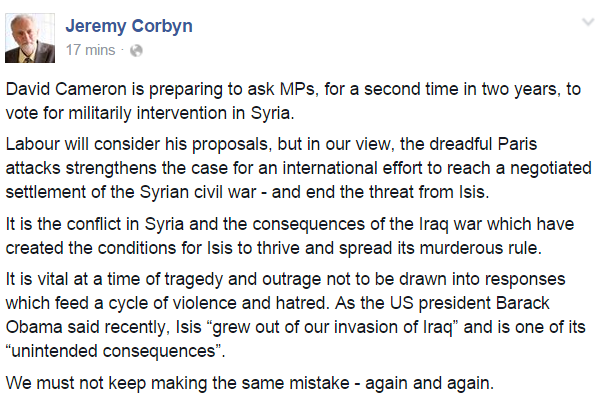 Exactly what would Jeremy Corbyn put on that negotiating table for a comprehensive peace settlement to the Syrian Civil War that: