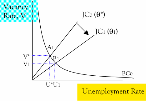 This reduction in reservation wages or the asking wages of job seekers increases the incentives for employers to post new vacancies because they can fill them at a lower cost. Both more intensive job search and more vacancies will see jobs filled faster, and more jobs created and filled.